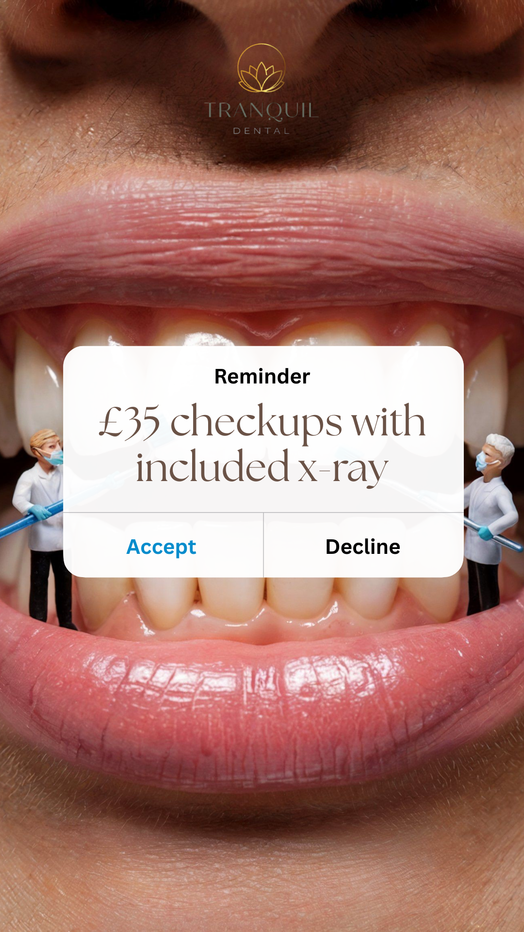 Dentistry with a differenceDemands class content Tranquil Dental is a state of the art cosmetic dental clinic in Wokingham, Berkshire. Their premium dental care demands superior content to perfectly display the high quality dental care the patients coming to the practice should expect. 🦷 58.7K New views in 2 months 11.3K Accounts reached in 2 Months 84.7K+ Total lifetime views Video Styles Game show reels Explainer videos Promotional content Photo Styles